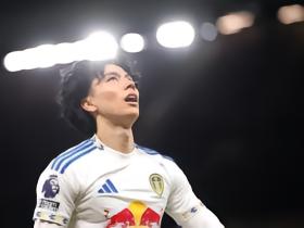 队史之最,田中碧首发的49场比赛中,利兹联胜率达61.2%