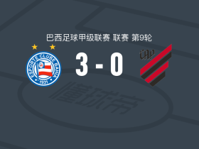 巴伊亚3-0大胜巴拉纳竞技,埃韦拉尔多两球,卢西亚诺-茹巴破门