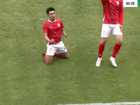 阿图什杯球员进球后跑上看台给母亲献花,后两黄变一红被罚下