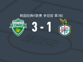 全北现代3-1大田韩亚市民,李昇祐点射,李洞俊破门