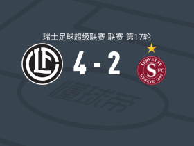 卢加诺3-1洛桑奥奇取4连胜,普热贝乌科破门,切拉尔建功