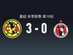 美洲3-0大胜蒂华纳,阿尔瓦罗-菲达尔戈破门,霍纳坦-罗德里格斯建功