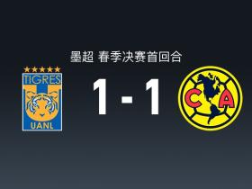 美洲vs墨西哥老虎球员评分:迭戈-莱内斯7.6分,富尔亨西奥5.6分