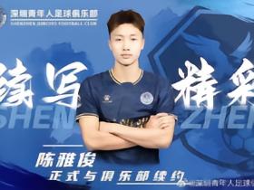 官方:深圳青年人与球员陈雅俊、卢竞森、郑智铭完成续约