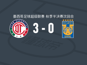 托卢卡体育3-0大胜墨西哥老虎,亚历克西斯-维加梅开二度,埃德加-洛佩斯建功