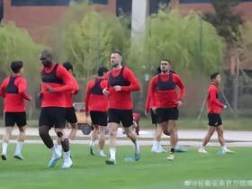 对阵青岛海牛,奥科雷、刘云已经出现在了训练场。塞...