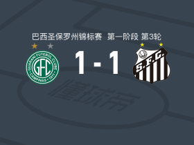 瓜拉尼1-1桑托斯,巴雷亚尔首开记录,kewen扳平比分