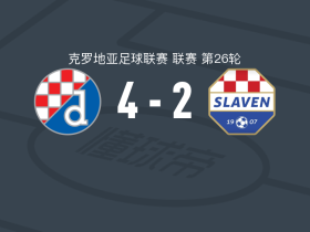 萨格勒布迪纳摩5-2大胜斯拉文贝鲁波,扎伊茨两球,贝廖两球
