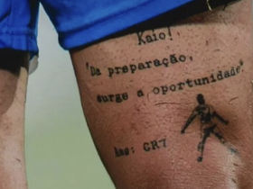 偶像,前尤文前锋凯奥-若热腿上纹着C罗的庆祝动作和建议