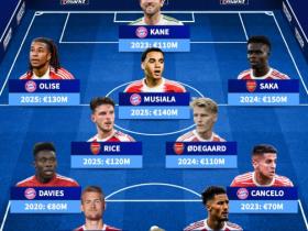 德转列阿森纳+拜仁历史最贵阵容:萨卡、穆西亚拉、凯恩领衔