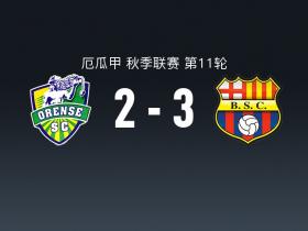 奥伦斯3-2巴塞罗那SC取厄瓜甲3连胜,帕拉莱斯两球,瓦尔特-埃雷拉建功