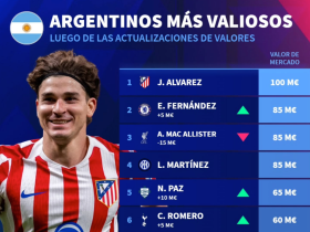 阿根廷球员身价:小蜘蛛1亿欧居首,恩佐、麦卡、劳塔罗8500万
