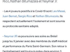 巴黎官方宣布,队内四名感染新冠的球员分别是梅西、...