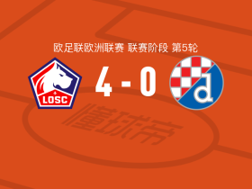 里尔4-0大胜萨格勒布迪纳摩,邦雅曼-安德烈建功,伊加马内1射1传
