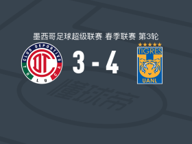 墨西哥老虎4-3逆转托卢卡体育,尼古拉斯-伊巴涅斯两球,奥齐耶尔-埃雷拉建功