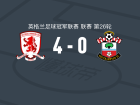 米德尔斯堡4-0大胜南安普顿,惠特克双响,阿兰-布朗破门