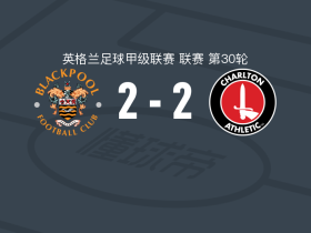布莱克浦2-2查尔顿,恩尼斯破门,马特-戈登建功