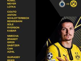 多特首轮欧冠大名单:埃姆雷-詹领衔,萨比策等球员在列