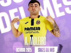 官方:比利亚雷亚尔前锋莫莱罗当选西甲10月最佳U23球员