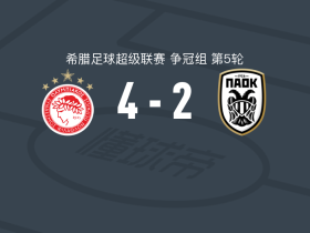 奥林匹亚科斯4-2逆转塞萨洛尼基取希超3连胜,热尔松-马丁斯1传1射,奇基尼奥建功