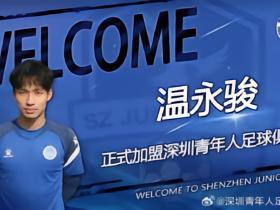 官方:温永骏正式加盟深圳青年人足球俱乐部
