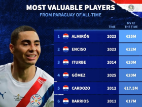 德转列巴拉圭球员历史身价前10:阿尔米隆第1,巴里奥斯上榜