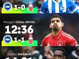布莱顿2-1诺丁汉森林,戈麦斯、维尔贝克、吉布斯-怀特破门