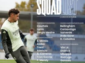皇马客战巴列卡诺大名单:姆巴佩领衔,米利唐、阿拉巴在列