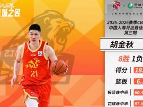 率队取得8胜1负,CBA三月最佳球员:广厦队胡金秋当选