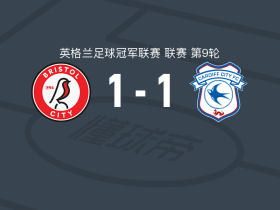 布里斯托尔城1-1卡迪夫城遭英冠3连平,坦纳首开记录,麦克纳利扳平