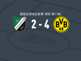 多特蒙德二队4-2逆转罗迪豪森,保利纳点射,卡巴尔建功