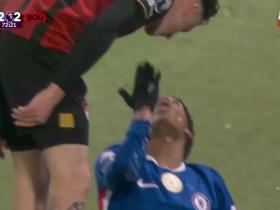 埃斯特旺被阿莱士-希门尼斯撞倒后,对他飞吻并大笑