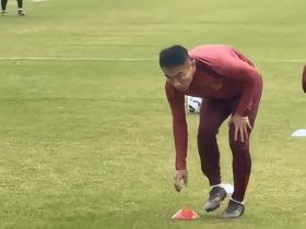 记者晒国足首练情况:于汉超摆放训练设施,吕焯毅接受采访