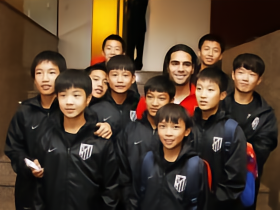 国足在肇庆开展公益活动,邵佳一携于汉超及三将与小球员踢球