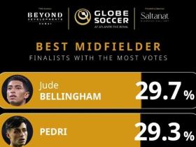 环足奖2025年最佳中场投票:贝林厄姆居首,佩德里位居次席