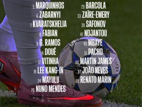 巴黎客战毕包大名单:门德斯、杜埃回归,登贝莱等4人缺阵