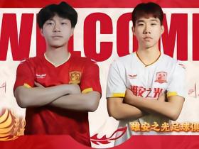 中冠河北雄安之光官方:后卫刘展宇、前卫谭朝升加盟球队