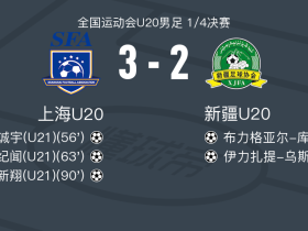 全运会男足:上海U20 3-2新疆U20,刘诚宇、蒯纪闻破门,李新翔绝杀