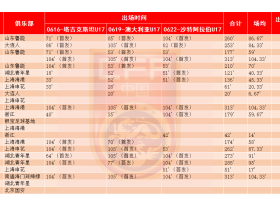 赛季俱乐部上场首发进球助攻黄牌红牌替补
