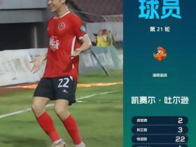 凯赛尔·吐尔逊获中乙联赛第21轮最佳球员