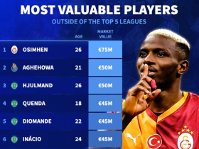 德转列非五大联赛球员身价榜:奥斯梅恩7500万第1,罗克上榜