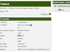 女足德转:武汉女足签下马里国脚特拉奥雷与赞比亚国脚穆波波