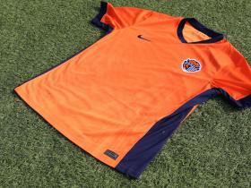 青岛海牛2026赛季主场球衣:主色调亮橙色,辅以深蓝色点缀