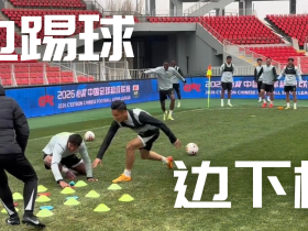 今日训练热身环节—边踢球边下棋