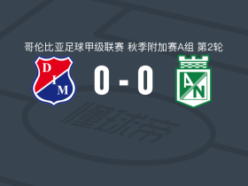 90分钟战报:麦德林独立0-0战平国民竞技,双方进入加时赛