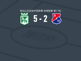 国民竞技5-2大胜麦德林独立,伊内斯特罗萨双响,特西略破门