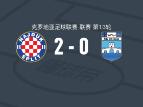 哈伊杜克2-0奥西耶克,克罗文诺维奇建功,舍戈锦上添花