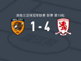 米德尔斯堡4-1大胜赫尔城,麦格里破门,惠特克1射1传