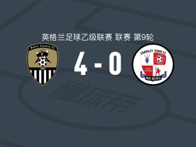 诺茨郡4-0大胜克劳利,泰瑞斯-霍尔梅开二度,阿拉萨纳-贾塔建功