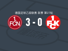 纽伦堡3-0大胜凯泽斯劳滕,洛乔什维利双响,马希耶夫点射破门